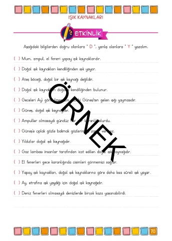 Aşağıdaki bilgilerden doğru olanlara “ D ”, yanlış olanlara “ Y ” yazalım.