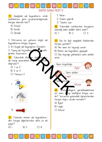 1. Görmemiz için yalnızca doğal ışık 11 Ses ile ilgili aşağıdaki ifadelerden