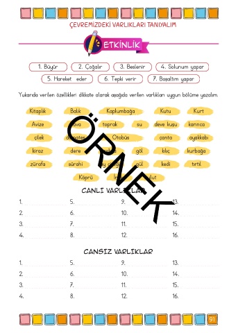 5. Hareket eder 6. Tepki verir 7. Boşaltım yapar